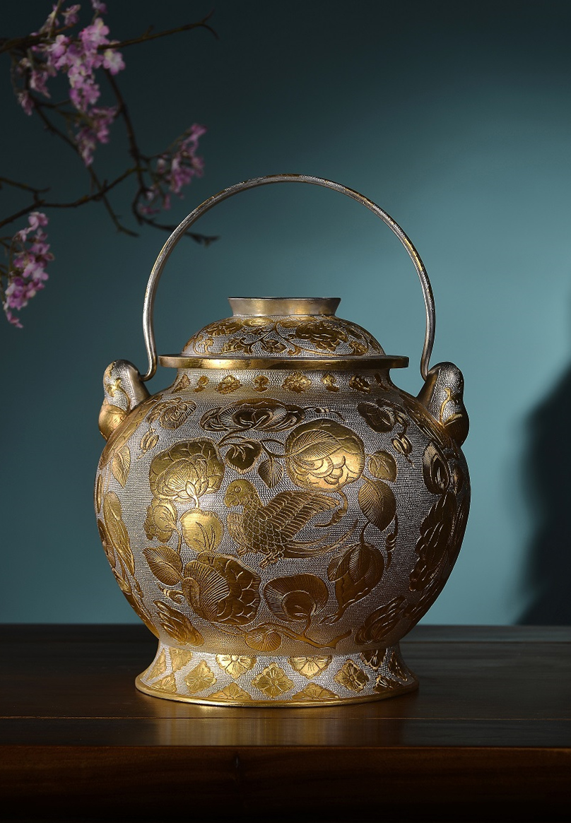 鎏金鹦鹉纹提梁罐