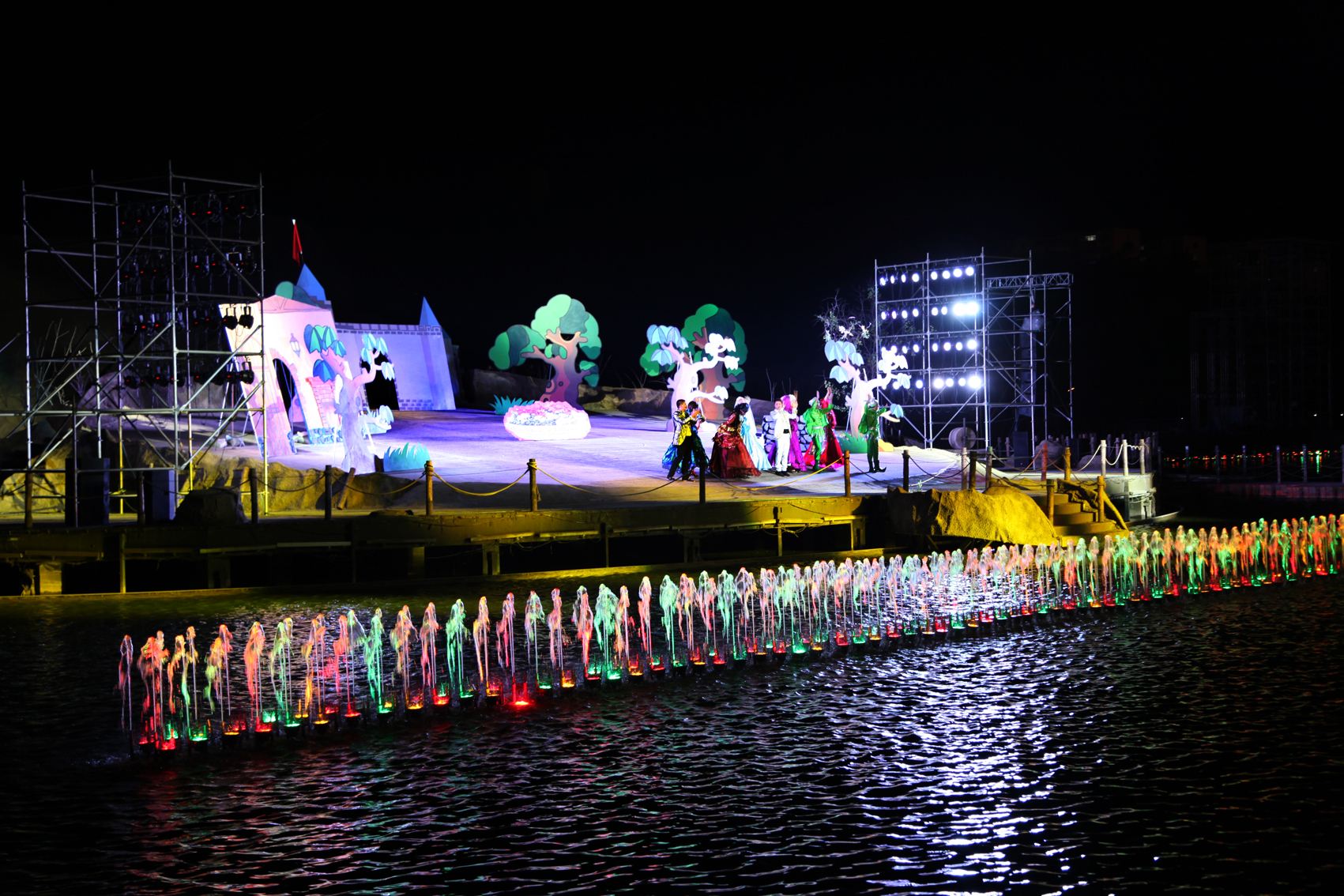 简介:榆溪坊水上秀场(榆溪坊剧场)位于榆林市核心地段——榆阳中路圣都乐园西南侧,项目整体横跨榆溪河东西两岸,囊括大型实景演出舞台、音乐喷泉、1700座观众席、500车位停车场及2000平米商业用地等物业内容。其中实景舞台仿照陕北传统民宿窑洞而建,总长度达200米,舞台总面积逾10000平米,堪称西北最大的水上秀场。榆溪坊水上秀场的定位为:市民大舞台,文化新窗口。2015年以来剧场累计演出115场,观众逾10万人次,演出剧目涵盖陕北情景歌舞剧、儿童话剧、钢琴音乐会、综艺晚会、演唱会、说唱曲艺等众多门类,每年4月中旬至10月中旬为演出季。演出经典剧目案例包括《歌从陕北来》《蒙汉歌会》《飞出黄土地的声音系列音乐会》《国际舞蹈盛会》《珠江•恺撒堡之夜钢琴音乐会》等。