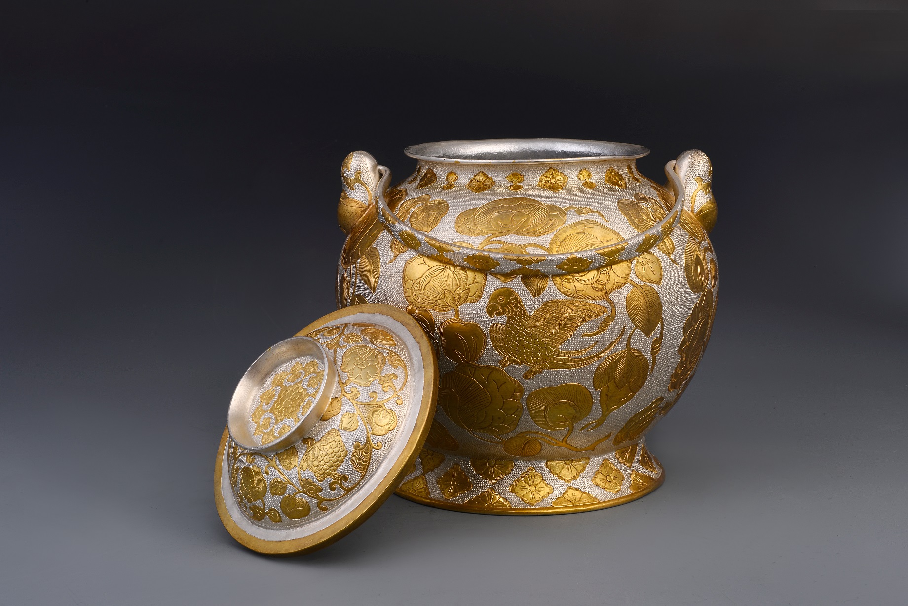 鎏金鹦鹉纹提梁罐