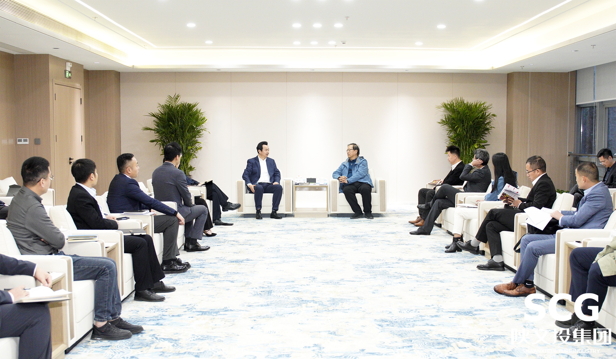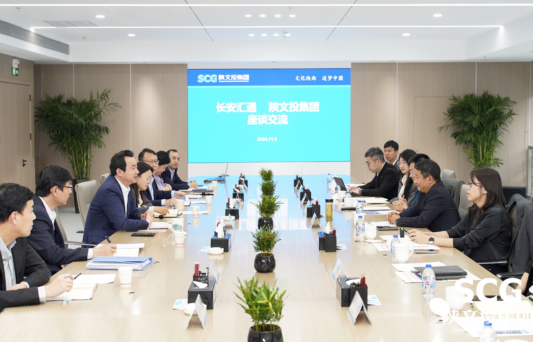 11月5日,长安汇通党委书记、董事长陶峰,党委副书记、总经理李聪等一行来访陕文投集团,与陕文投集团党委书记、董事长黄勇围绕探索深化务实合作新渠道、新模式座谈交流。