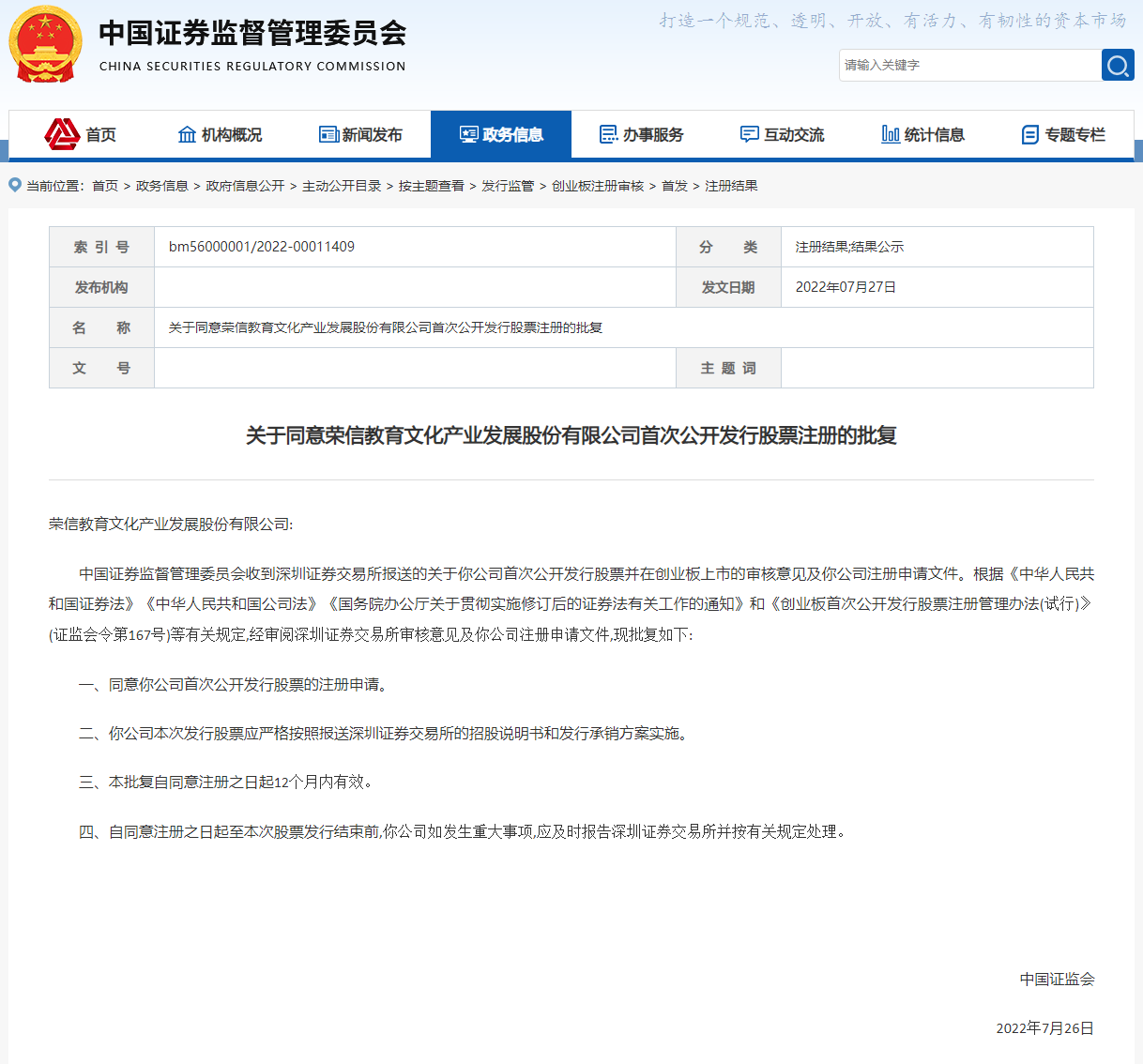 近日,中国证券监督管理委员会发文,同意易点天下网络科技股份有限公司(简称“易点天下”)、荣信教育文化产业发展股份有限公司(简称“荣信文化”)首次公开发行股票注册申请。易点天下和荣信文化均为陕文投集团近年…