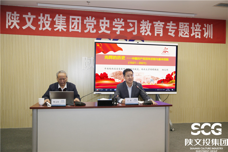 4月9日下午,陕文投集团举办党史学习教育专题培训,特邀陕西省委党史研究室原巡视员、西北大学特聘教授姚文琦作题为“光辉的历史—中国共产党百年历程与基本经验”专题培训,陕文投集团党委书记、董事长王勇主持并讲话。