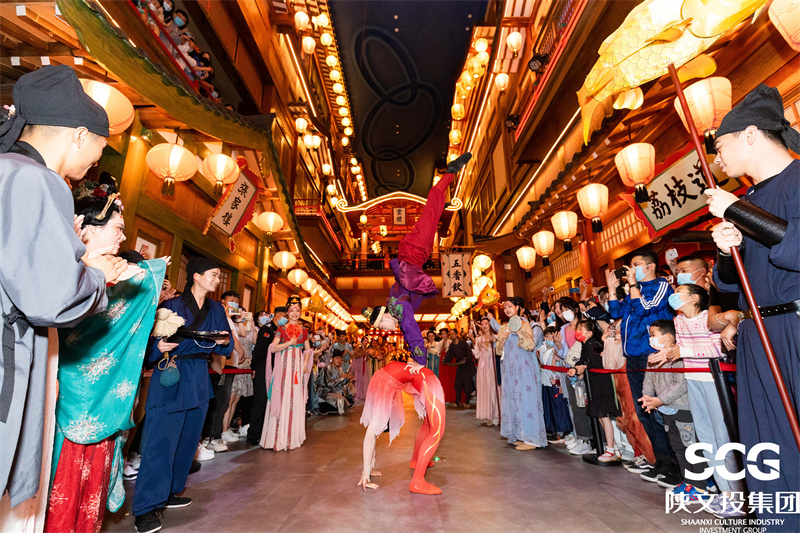 在全国文化和旅游市场呈现积极复苏态势下,由陕文投集团创意策划、建设运营的“长安十二时辰”沉浸式体验街区备受青睐。项目自今年4月28日试运营以来,累计接待游客75万余人次。项目以在地唐文化资源的独特性、至高性,“唐风市井文化”的精准定位,以及电视剧IP转化为深度沉浸式体验的新颖形式,受到社会各界和海内外媒体的广泛关注和高度赞誉,成为疫情常态化下全国文旅行业现象级精品项目。