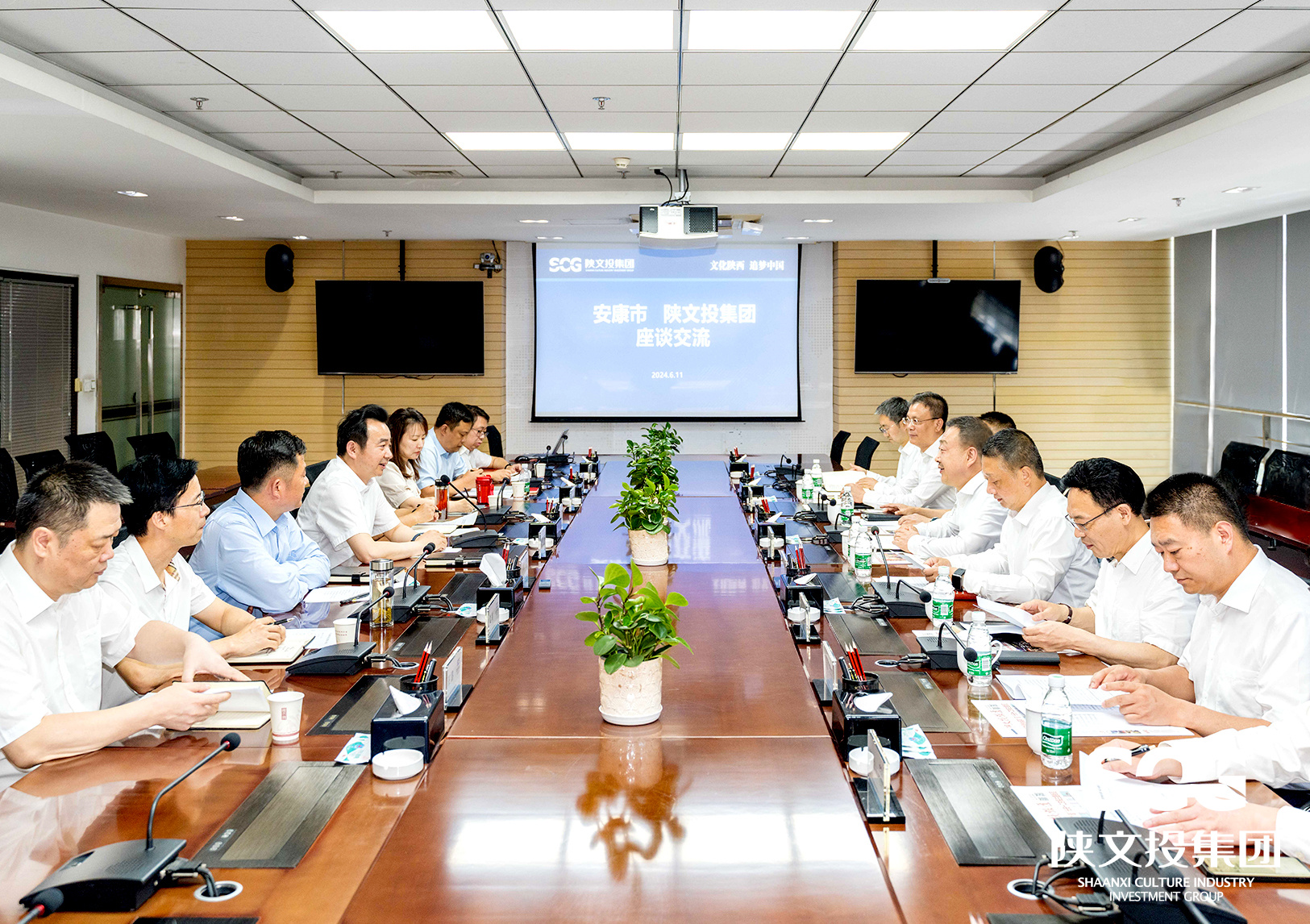 6月11日,安康市委书记武文罡来访陕文投集团,与集团党委书记、董事长黄勇围绕进一步深化战略合作,推进安康全域生态旅游建设,携手开创双方合作新高度、新局面座谈交流。安康市政府副市长周耀宜,陕文投集团副总经理郝国庆、党委副书记王景龙参加。