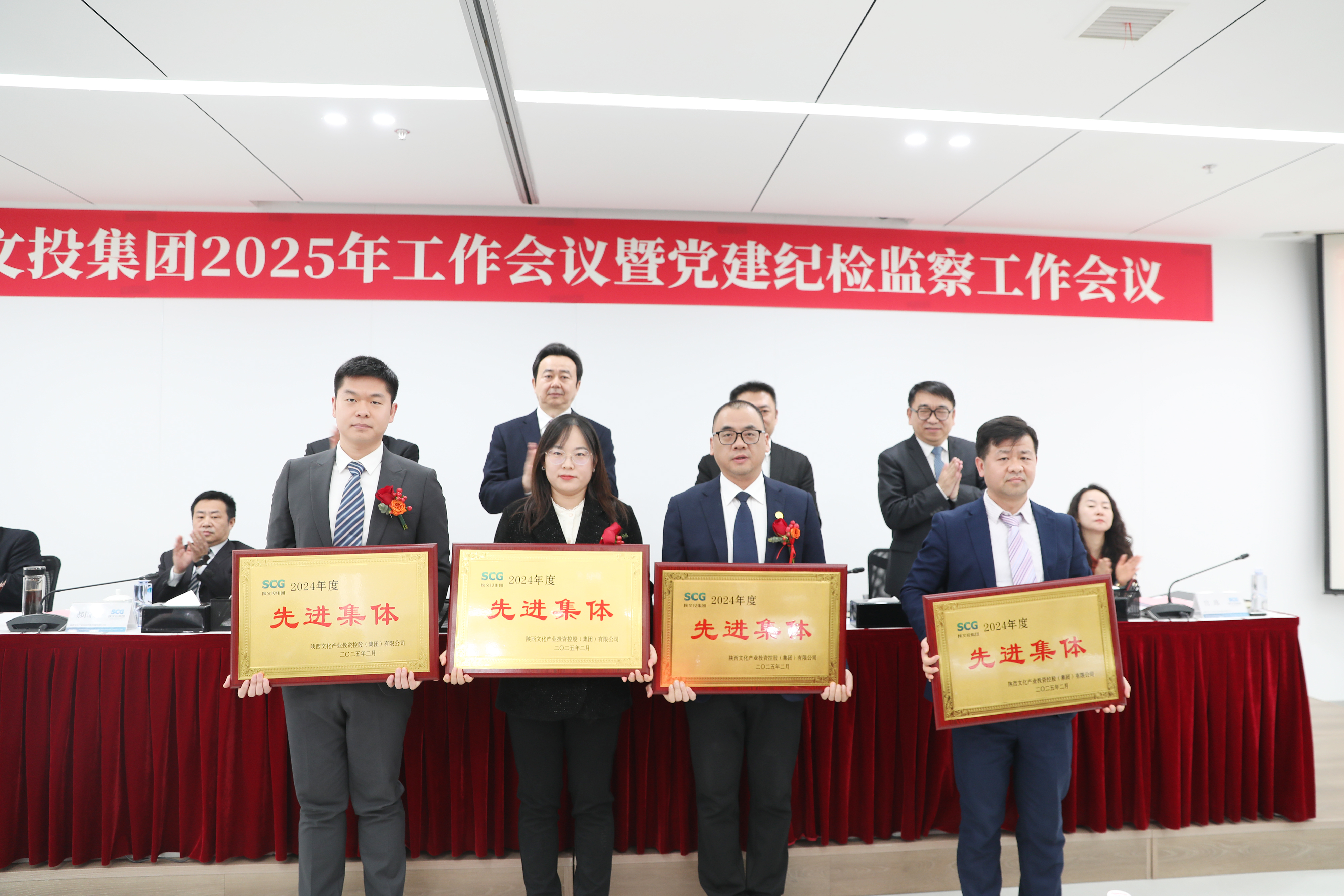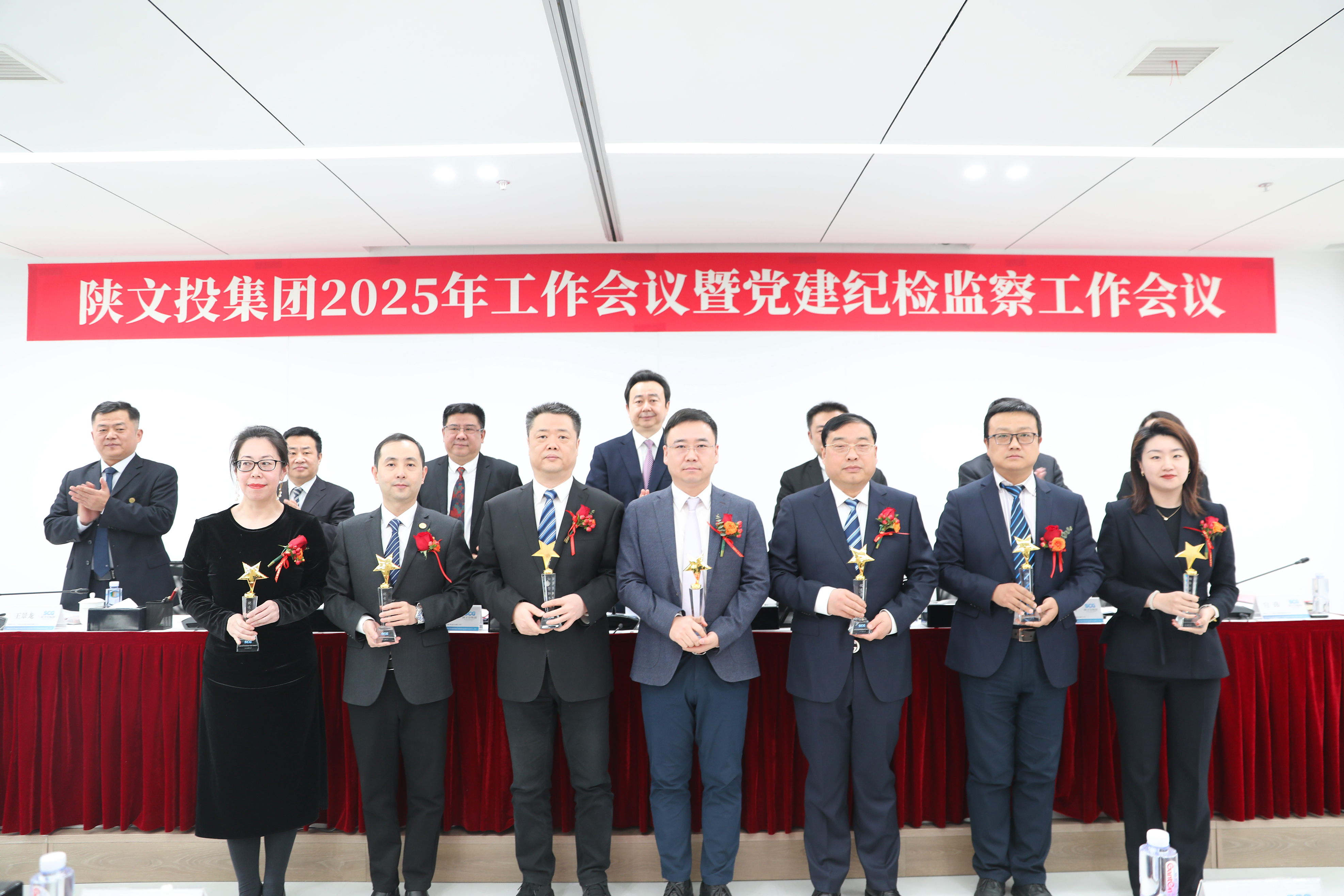 陕文投集团领导班子成员、总助级高管,各子公司、集团各部门干部员工代表现场参会,其余干部员工通过视频直播线上参加。会议表彰了集团2024年度先进集体、优秀管理干部、先进工作者,颁发了突出贡献奖、创新奖、营销标兵等奖项。