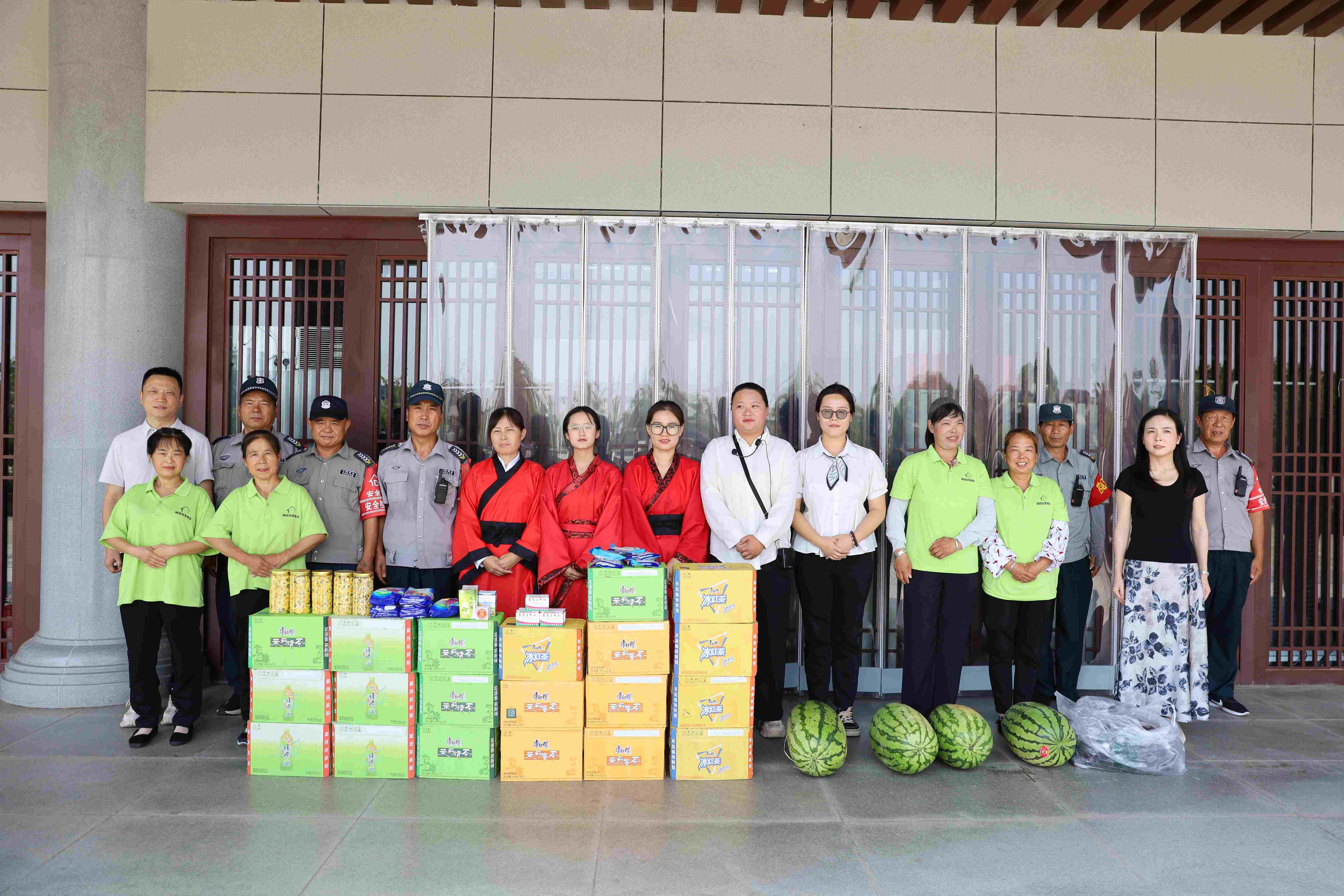 活动期间,陕文投韩城公司总经理田小平、工会主席高璟带队组成慰问小组,先后前往韩城公司本部、文渊阁酒店、隍庙古街区、古城三庙景区、司马迁祠景区对一线员工及各区域保洁安保等人员进行慰问。每到一处,慰问组都细心询问大家的作息安排、身体状况,倾听大家在高温天气下的工作困难与防暑需求,并将一份份满载关怀的慰问物资送到大家手中。
