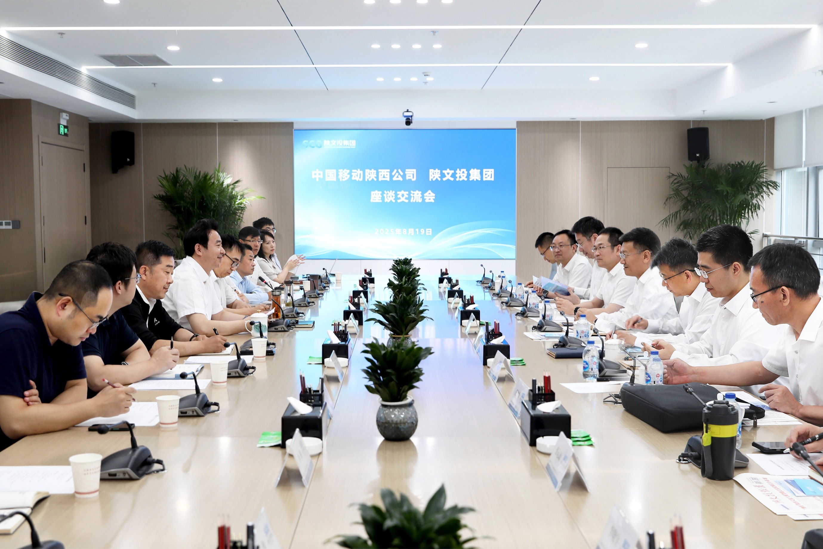 8月19日,中国移动通信集团陕西有限公司党委书记、董事长、总经理周敏一行来访陕文投集团,与集团党委书记、董事长黄勇围绕充分发挥各自优势,在更深层次、更宽领域全面推动深化合作再上新台阶,共同加快“人工智能+文旅”科技创新平台建设,打造陕西文旅人工智能创新示范项目,推进文旅全产业链数智化转型升级座谈交流。