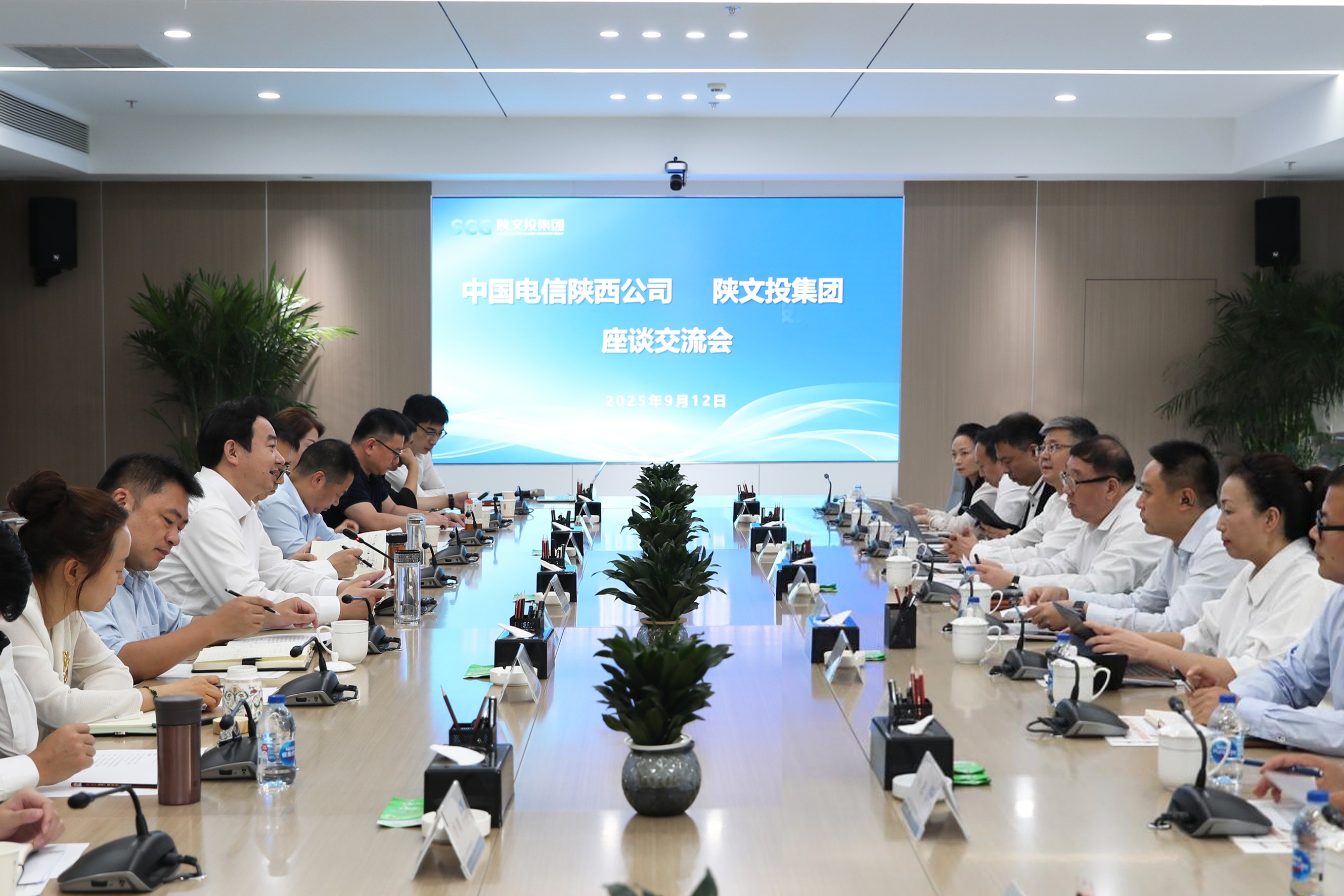 9月12日,中国电信陕西公司党委书记、总经理上官亚非一行来访陕文投集团,与集团党委书记、董事长黄勇围绕充分发挥各自优势,汇聚资源,协同推动“文旅+科技”深度融合,探索建立共赢、可持续的项目创新合作机制,携手加快科技赋能文旅产业高质量发展座谈交流。