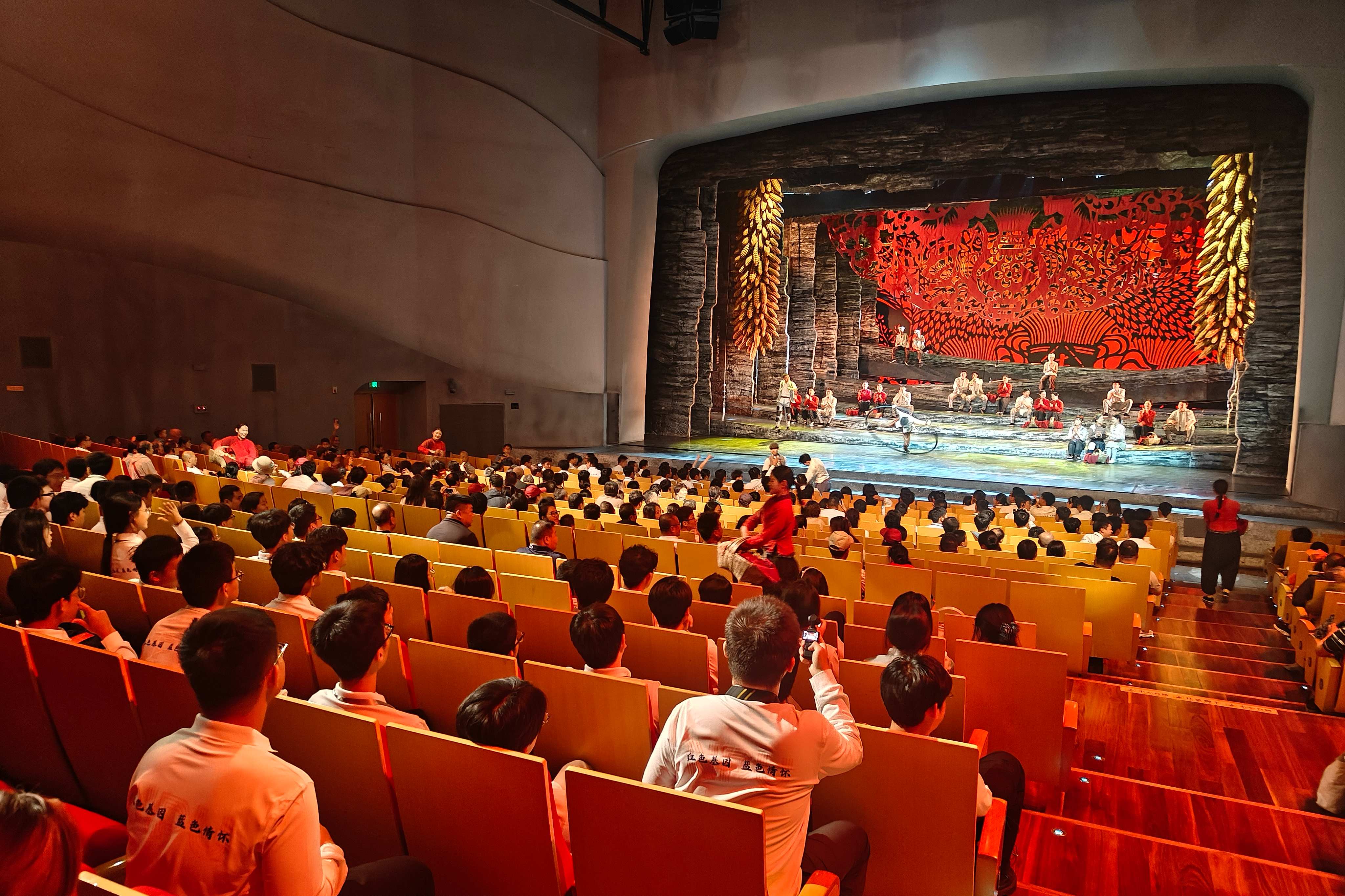 学生们一起观看观看红秀《延安 延安》演出。这部以延安革命历史为背景的大型红色演艺,通过现代化的舞台技术和感人的故事情节,生动再现了革命青年在延安的奋斗历程。