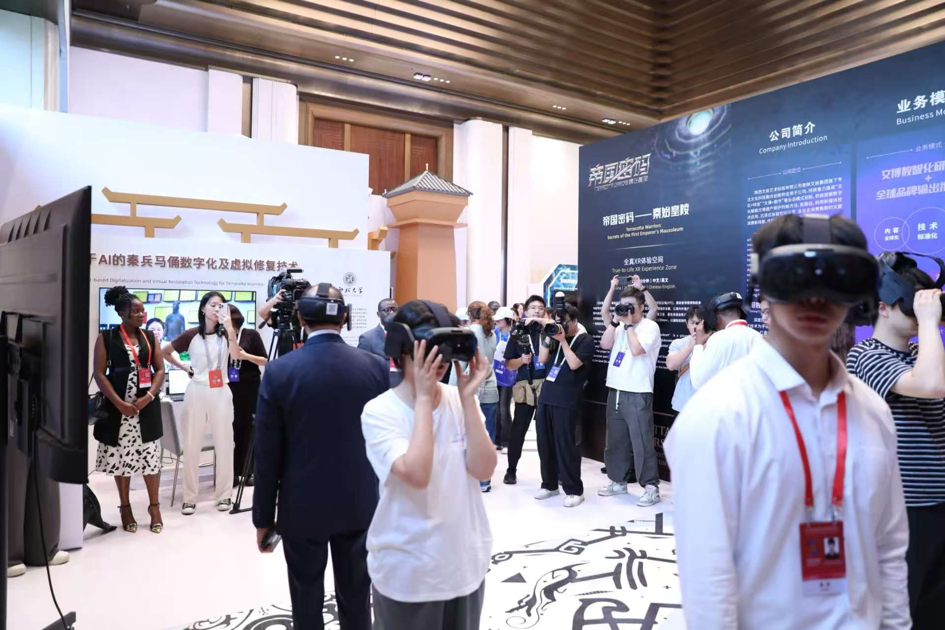 由陕文投集团携手宏达电(HTC)联合打造的《帝国密码——秦始皇陵》全真XR体验展,受邀亮相“文物类”展区“兵马俑数字化”联合展位,与秦始皇帝陵博物院、西北大学共同展示文化遗产数字化的最新成果,项目以沉浸式数字叙事再现大秦文明的恢宏气象,成为本届论坛展现文化遗产保护与传播新范式的一大亮点。